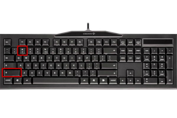 2、找到键盘上的“shift”键和位于上方的数字“2”键。