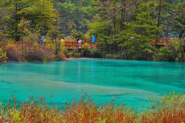 2021年9月26日,四川阿坝,游客在九寨沟景区观赏游览,九寨沟秋意渐浓百利软件 。